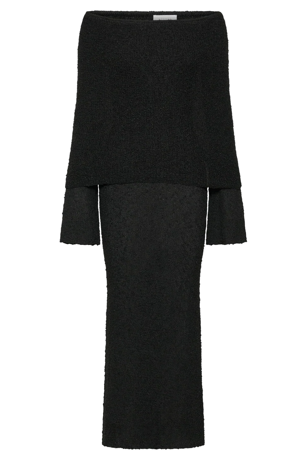 The matching skirt follows the body with a straight, elongated line, offering a flattering women’s fashion fit while remaining comfortable and easy to move in. The tactile knit brings subtle depth, creating a refined yet cosy look.