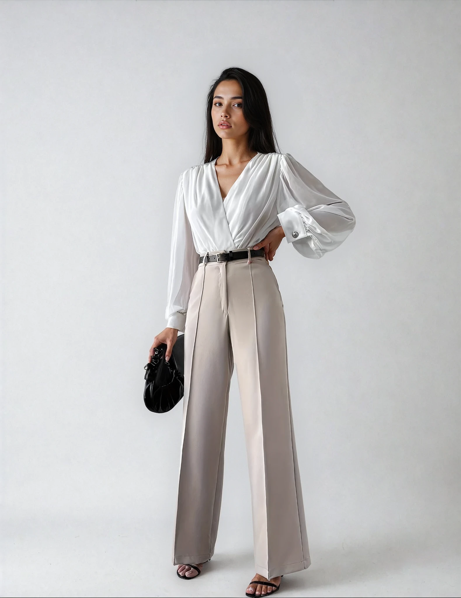 Step into power dressing with the Royal Line Pleated High-Waist Pants — a sophisticated staple designed to sharpen your silhouette and elevate your every stride. Featuring a tailored high-rise waist, subtle front pleats, and a sleek wide-leg finish, these trousers deliver structure, polish, and just the right amount of movement.
